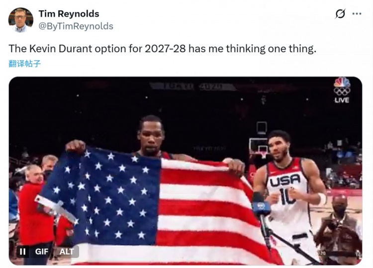 2025-10-20 01:19:14出征28年奥运会?美记:杜兰特27-28赛季球员选项让我在想这件事