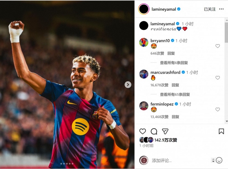 2025-11-03 08:04:51本赛季9场4球5助!亚马尔社媒庆祝胜利:坚韧