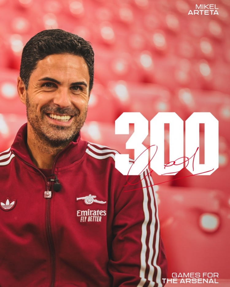 2025-10-05 00:26:10阿尔特塔迎来执教枪手300场里程碑,阿森纳晒海报:非凡的成就