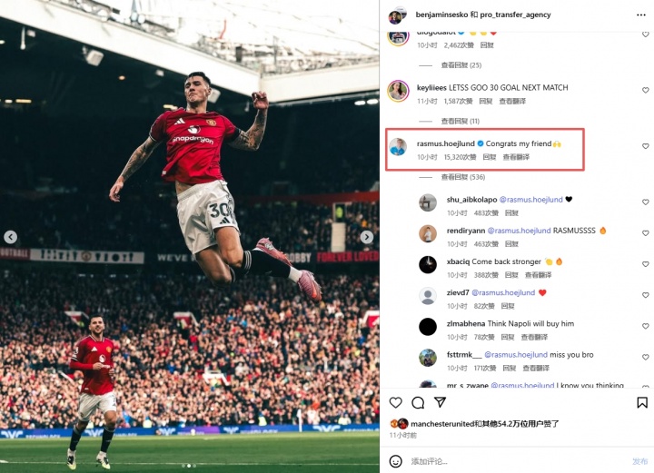 2025-10-05 16:02:48舍什科社媒发文庆祝进球和胜利,霍伊伦评论:恭喜你,我的朋友!